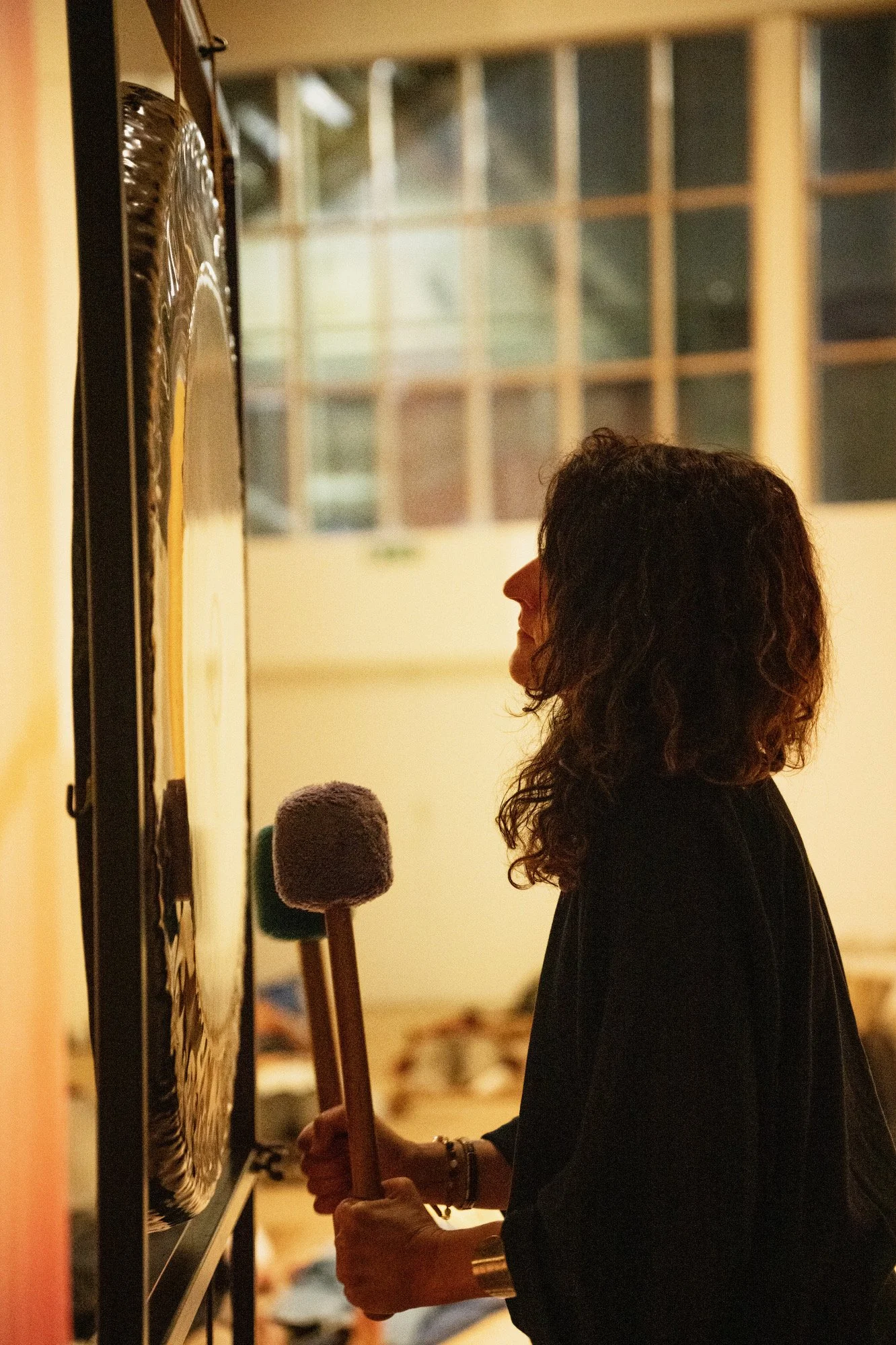 I am part of Sounding Society, a collective exploring sound as shared language, weaving gong, rhythm, and improvisation into immersive acoustic environments.